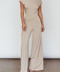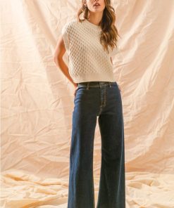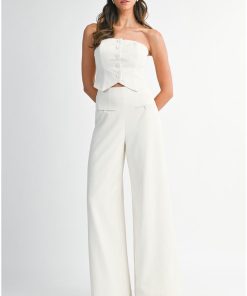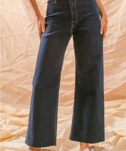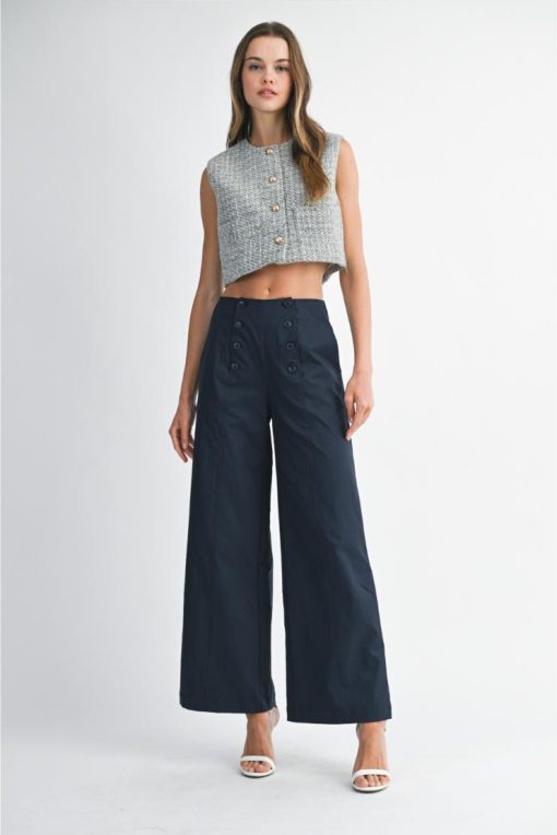 Pippa & Pearl Women’s Apparel Frankie Button Detail Wide Leg Trousers – Navy | Navy