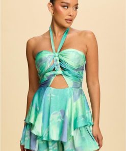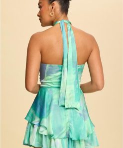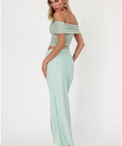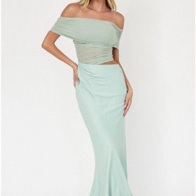 Pippa & Pearl Women’s Dresses Amaya Mesh One Sleeve Satin Skirt Maxi Dress – Sage Green | Sage Green