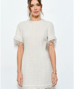Pippa & Pearl Women’s Dresses Iris Beaded Fringe Tweed Mini Dress – Black | Black
