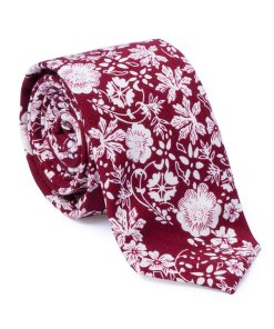 Pippa & Pearl Women’s Edmond Floral Print Neck Tie – Burgundy & White | Burgundy & White