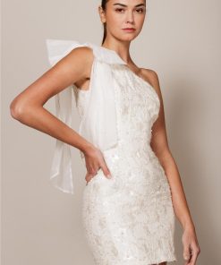 Pippa & Pearl Women’s Dresses Take Me To The Alter Floral & Beading Textured Mini Dress | White
