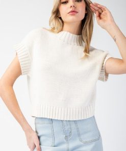 Pippa & Pearl Women’s Apparel Sophie Sleeveless Boxy Turtleneck Cropped Sweater – Taupe | Taupe