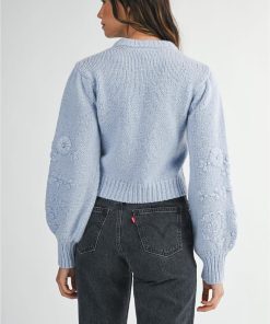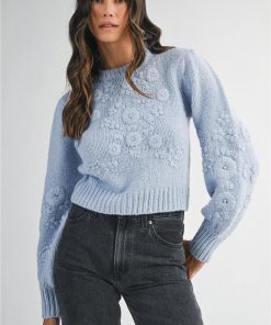 Pippa & Pearl Women’s Apparel Tia Floral Embroidered Long Sleeve Sweater – Light Blue | Light Blue