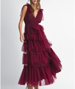 Pippa & Pearl Women’s Dresses Amaya Mesh One Sleeve Satin Skirt Maxi Dress – Sage Green | Sage Green
