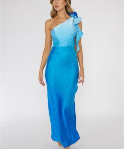 Pippa & Pearl Women’s Dresses Luna Aqua Blue Ombre Satin One Shoulder Maxi – Blue | Blue Ombre