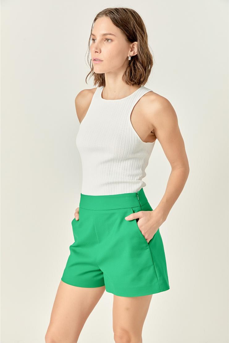 Unleash your inner fashionista with the Cara Banded High Waisted Mini Suit Shorts! These stylish shorts feature a high waist design, perfect for showing off your curves. The bold Kelly Green color adds a pop to any outfit, making you stand out from the crowd. Upgrade your wardrobe with these must-have shorts!