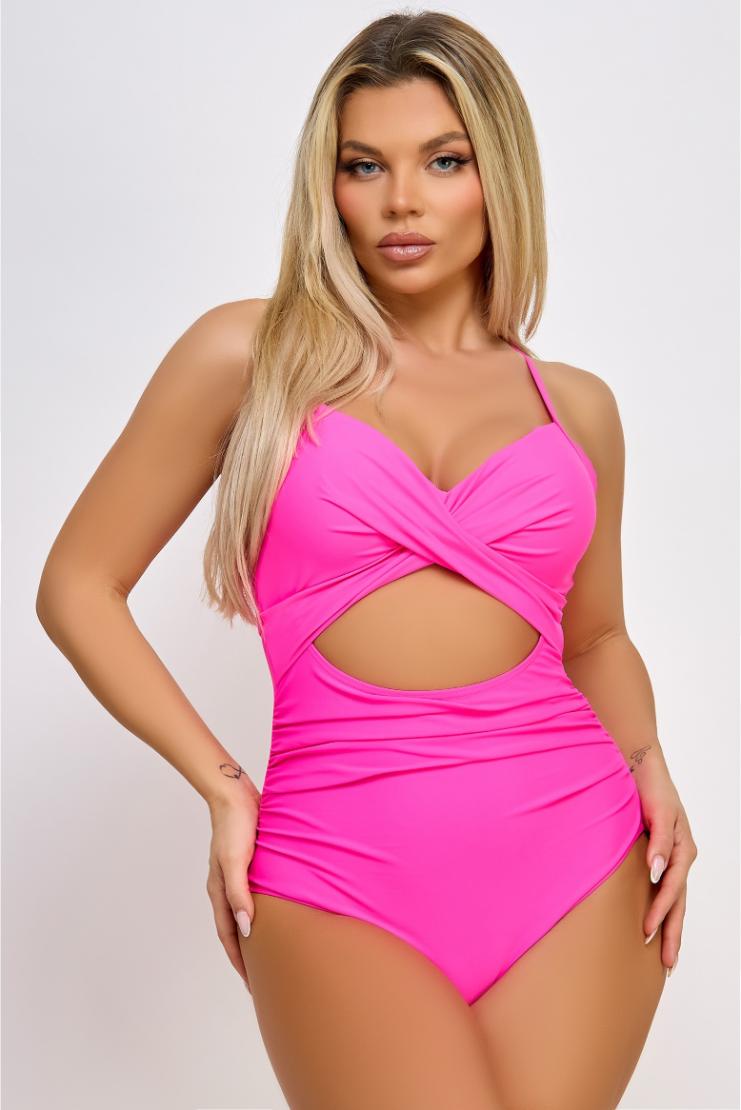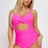 Pippa & Pearl Women’s Apparel Darcy Twist Bodice Cut Out One Piece Swimsuit – Hot Pink | Hot Pink
