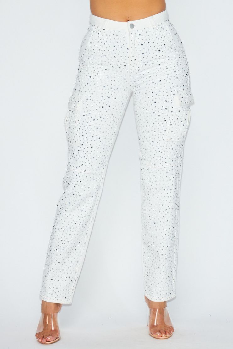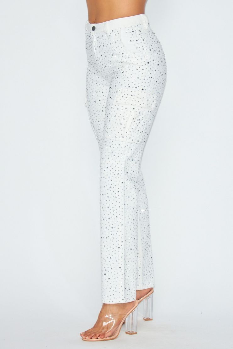 Rhinestone embellishment channels glam rock on these straight-leg jeans cut from low-stretch denim.