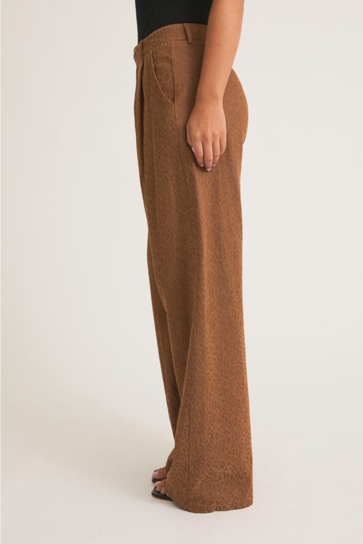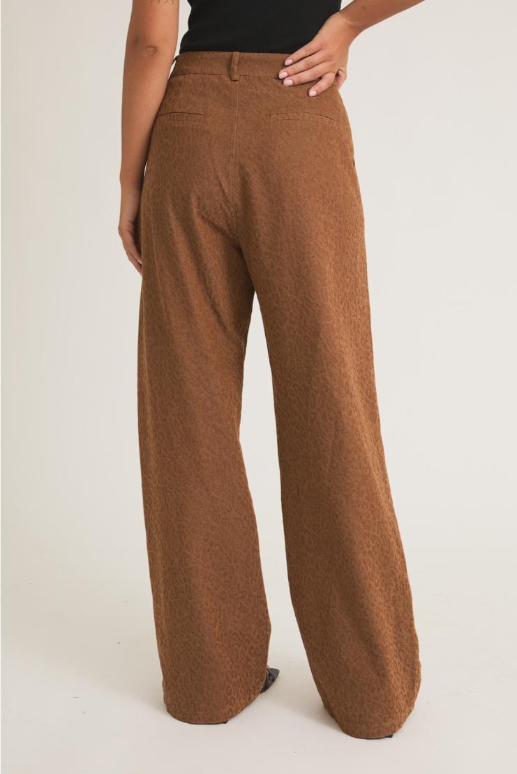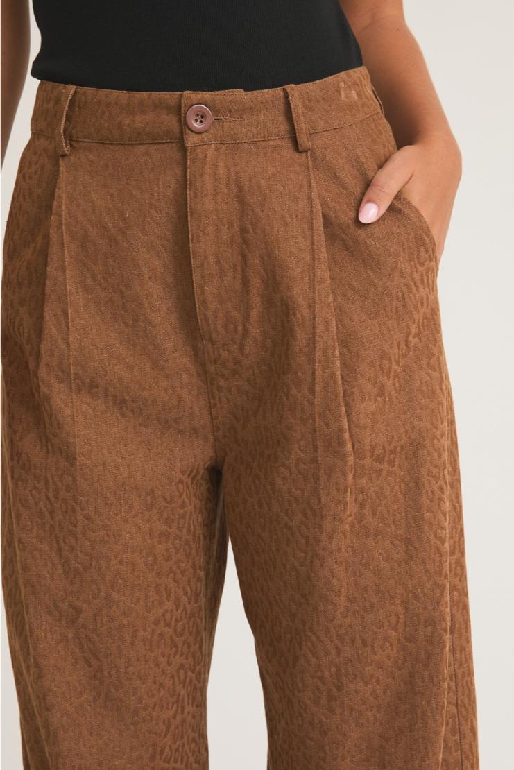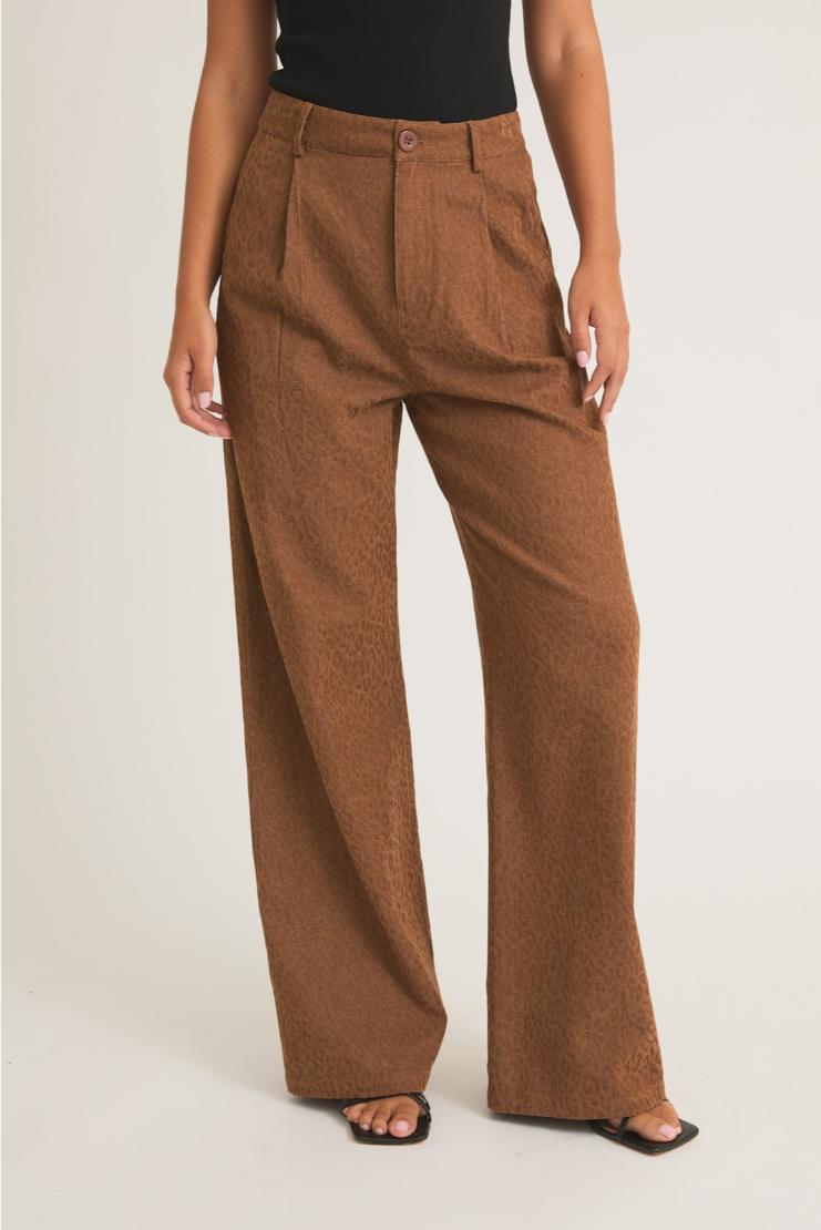 Unleash your wild side with these high-waisted, wide leg pants featuring a subtle animal print design. The pleated details add a touch of sophistication to these statement pants, perfect for standing out in style. Get ready to pounce on this fashion must-have!