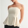 Elevate your wardrobe with the Olivia Sculpted Peplum Strapless Top in Ivory. Designed with a refined silhouette, its structured peplum detail accentuates the waist, while the strapless neckline offers a timeless, elegant appeal. Crafted for a flawless fit, this top effortlessly blends sophistication with modern style, making it perfect for both formal occasions and chic everyday wear.