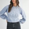 Wrap yourself in charm with the Tia Floral Embroidered Long Sleeve Sweater in light blue. Its delicate floral embroidery adds a whimsical touch, while the cozy fabric keeps you comfortably stylish all day. Perfect for brightening up any outfit, this playful sweater pairs effortlessly with your favorite jeans or skirts for a fresh, fun look.