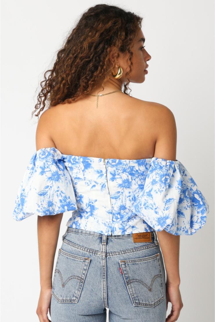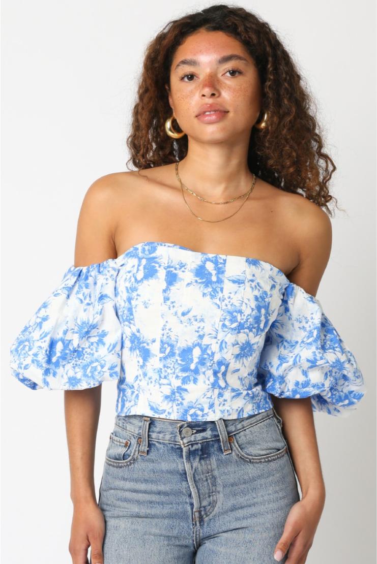 Embrace your feminine side with our Tiffany Floral Print Top in dreamy blue! This flirty off-the-shoulder design features adorable puff sleeves that add just the right amount of drama. Perfect for sunny brunches or evening strolls, this top pairs effortlessly with your favorite jeans or shorts for an instant style upgrade. Get ready for compliments!