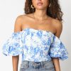 Embrace your feminine side with our Tiffany Floral Print Top in dreamy blue! This flirty off-the-shoulder design features adorable puff sleeves that add just the right amount of drama. Perfect for sunny brunches or evening strolls, this top pairs effortlessly with your favorite jeans or shorts for an instant style upgrade. Get ready for compliments!