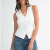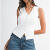 The Vivianna Knit Button Up Vest in white offers a refined layering option with its clean lines and classic button-up design. Crafted for both comfort and style, this vest elevates any outfit with its elegant simplicity, making it perfect for sophisticated, effortless dressing.
