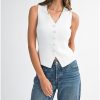 The Vivianna Knit Button Up Vest in white offers a refined layering option with its clean lines and classic button-up design. Crafted for both comfort and style, this vest elevates any outfit with its elegant simplicity, making it perfect for sophisticated, effortless dressing.