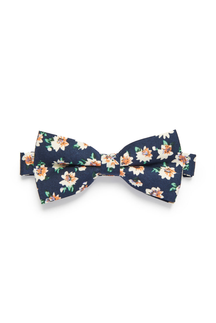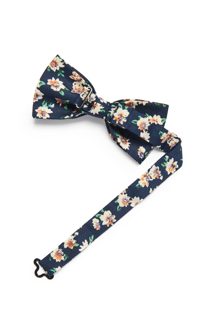 Pretty bright florals add spring time vibes to a dapper little bow tie.