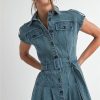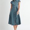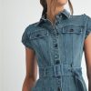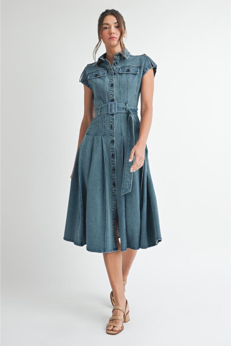 Dress to impress with the Dana Button Up Belted Denim Midi Dress. With its unique button-up design and belted waist, this dress is a stylish and comfortable addition to your wardrobe. Perfect for any occasion, feel confident and chic in this versatile piece.