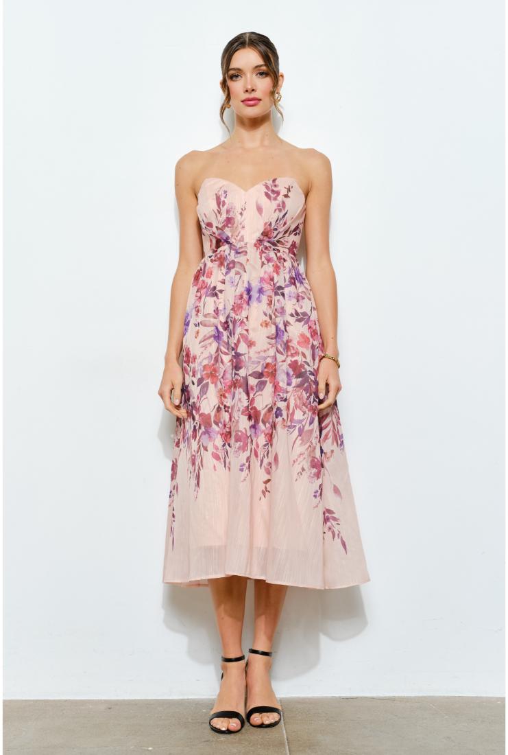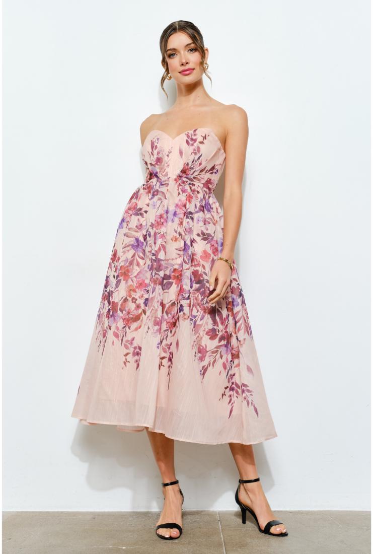 Step into sunshine with the Faith Floral Print Strapless Midi Dress! This playful, strapless design features a vibrant floral pattern that brings a fresh, flirty vibe to any occasion. Its midi length offers a perfect balance of elegance and ease, making it ideal for garden parties, brunch dates, or weekend adventures. Embrace effortless style and let your carefree spirit bloom in this charming dress.