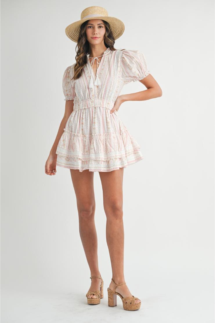 Pippa & Pearl Women’s Dresses Gabriella Floral Print Ruffled Tiered Mini Dress – Coral | Coral