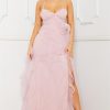 Royal rows of ruffles inform this alluring gown, made of dreamy tulle and with a rose detail for a look that will crown you belle of the ball.