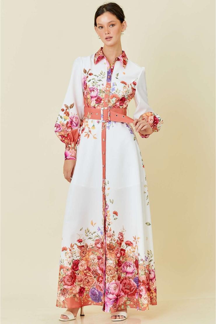 Introducing the Mayra Collared Button Up Floral Maxi Dress – a luxurious addition to your wardrobe. This exquisite dress features a timeless collared design and beautiful floral print. The button-up front adds a touch of sophistication, making it the perfect dress for any upscale event. Elevate your style with this stunning maxi dress.