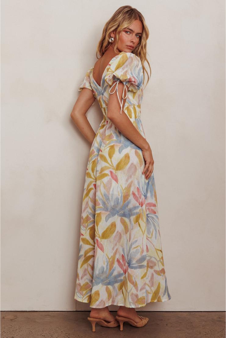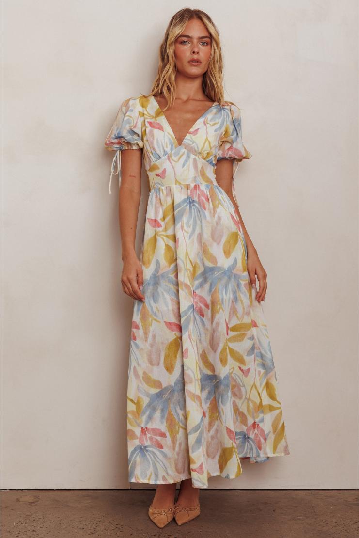 Add a touch of sweet whimsy to your wardrobe with the Melony Maxi Dress. Its playful puff sleeves and delicate floral print will have you twirling through your day with ease. Perfect for any occasion, this dress is sure to bring a smile to your face.