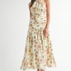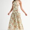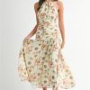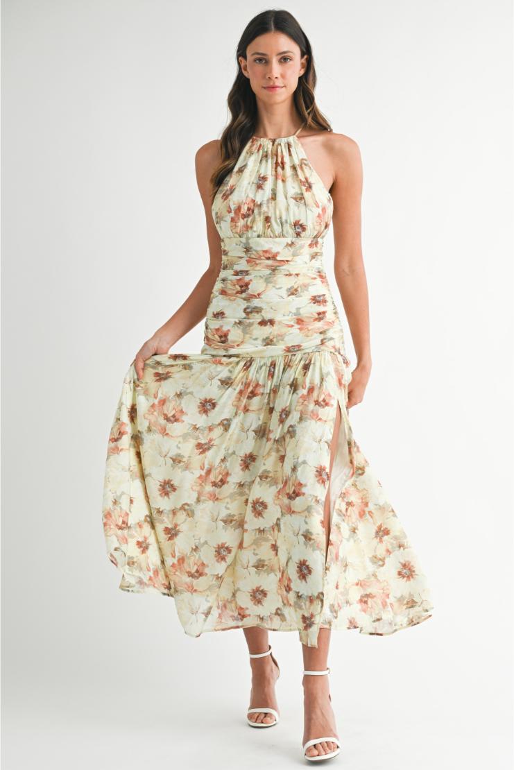 Indulge in the opulence of summer with our Summer Floral Print Ruched Halter Midi Dress in vibrant yellow. The intricate floral print and ruched detailing exude sophistication and elegance, while the halter neckline adds a touch of sensuality. Step into the season of style with this exclusive dress.