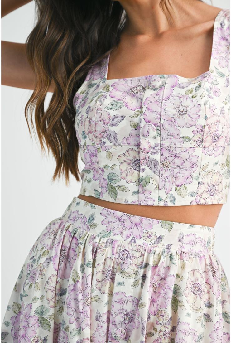 Add a splash of fun to your wardrobe with this Violet Florals Crop Top and Skirt Set, sold separately for mix-and-match magic. The vibrant purple floral print brings a playful vibe, perfect for sunny days or lively nights. Pair the crop top with your favorite jeans or match the skirt for a coordinated look that’s full of personality and charm.