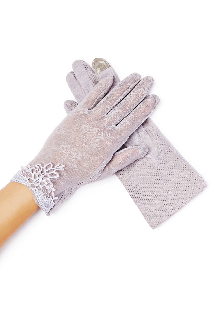 These beautiful sheer gloves are not only timeless, but practical. These light weight floral print gloves are embellished with a delicate detailing on the cuffs. Perfectly feminine and perfectly functional.