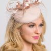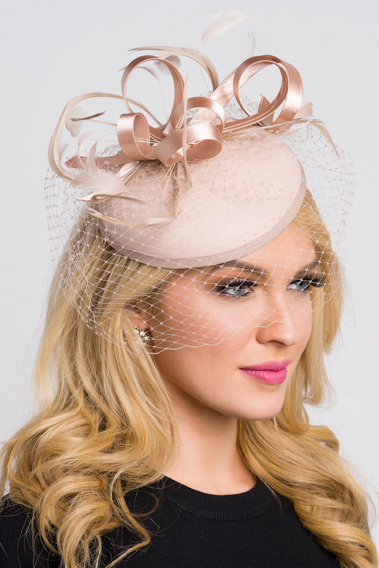 Be the envy of the party in this elegant felt fascinator. The round felt base is covered with satin ribbon loops, adorned with flighty feathers and topped off with a birdcage veil. This gorgeous piece is perfect for any special occasion.