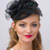 Sophistication meets simply gorgeous! This elegant head piece comes with a flexible, detachable headband for easy storage and travel. The Fascinator couture straw mesh hat measures approximately 9″ x 8″. Adorned with flighty feathers and gorgeous center piece rose made of horsehair, this statement piece is perfect for any special occasion.