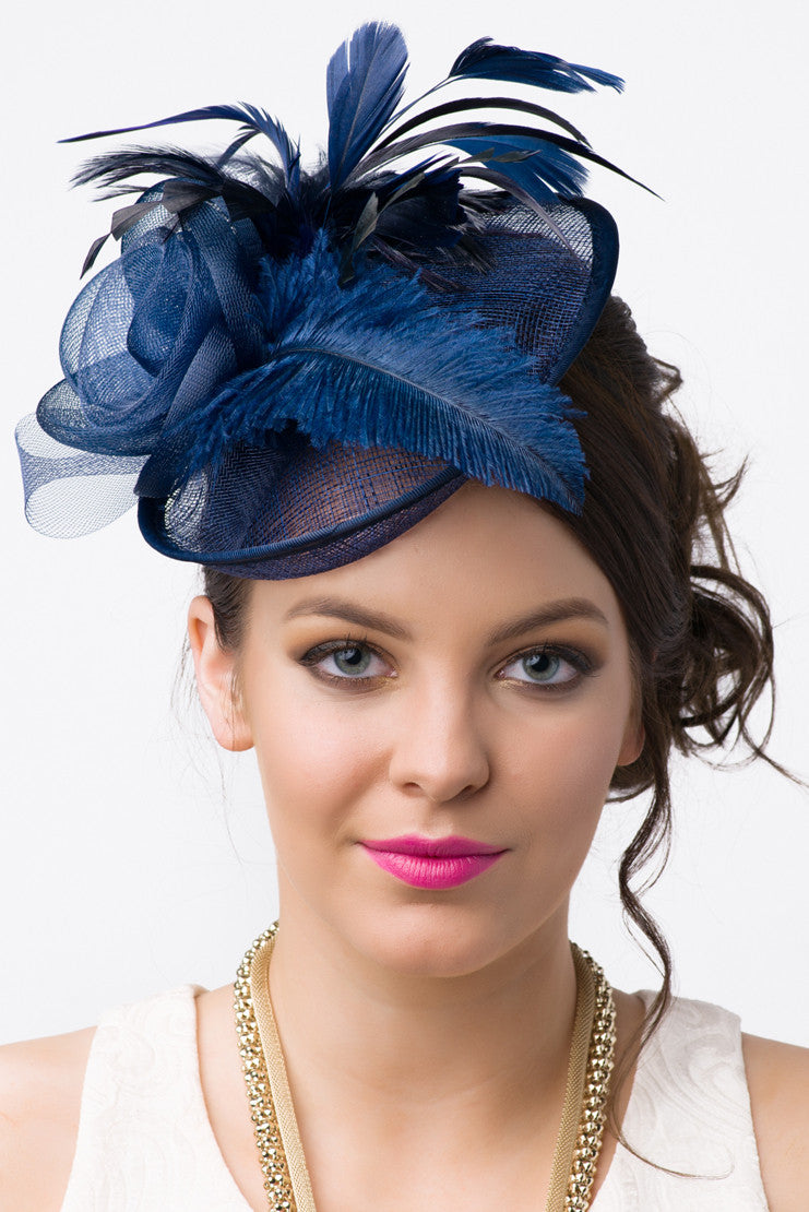 Sophistication meets simply gorgeous! This elegant head piece comes with a flexible, detachable headband for easy storage and travel. The Fascinator couture straw mesh hat measures approximately 9″ x 8″. Adorned with flighty feathers and gorgeous center piece rose made of horsehair, this statement piece is perfect for any special occasion.
