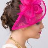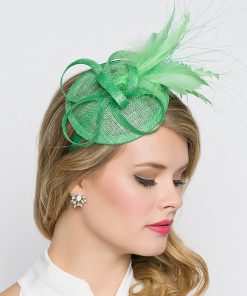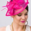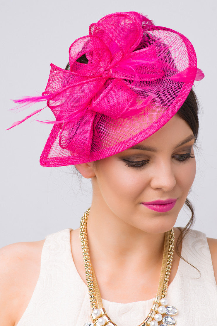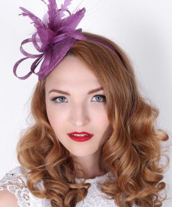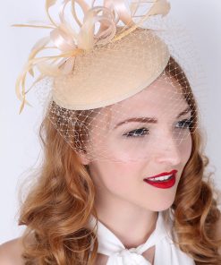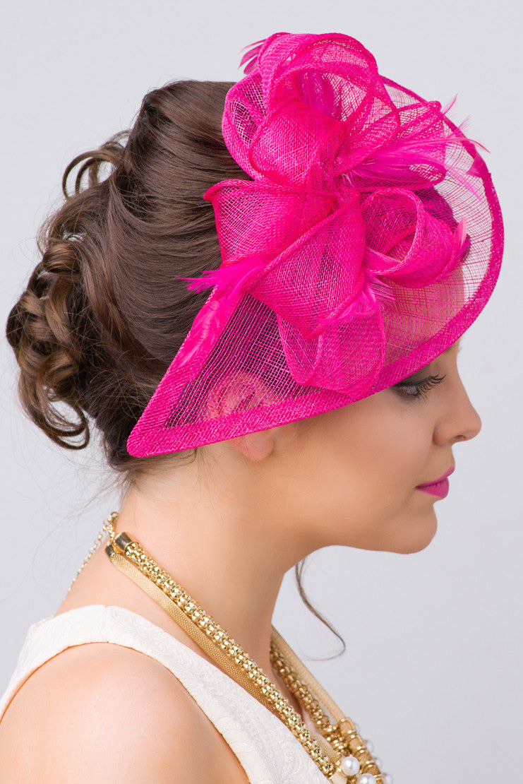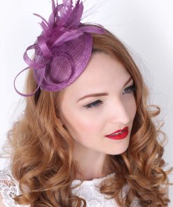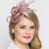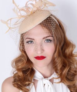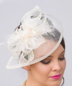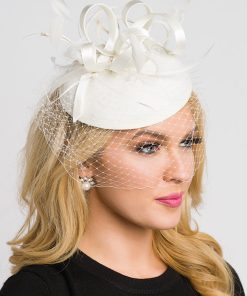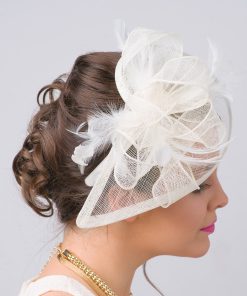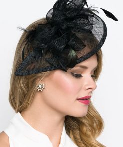 Timeless glamour. This sassy fascinator gives a nod to vintage style with a bouncy mesh ribbon and flighty feathers. With its classic sinamay mesh shape and elegant look it will be your go-to fascinator for the season.