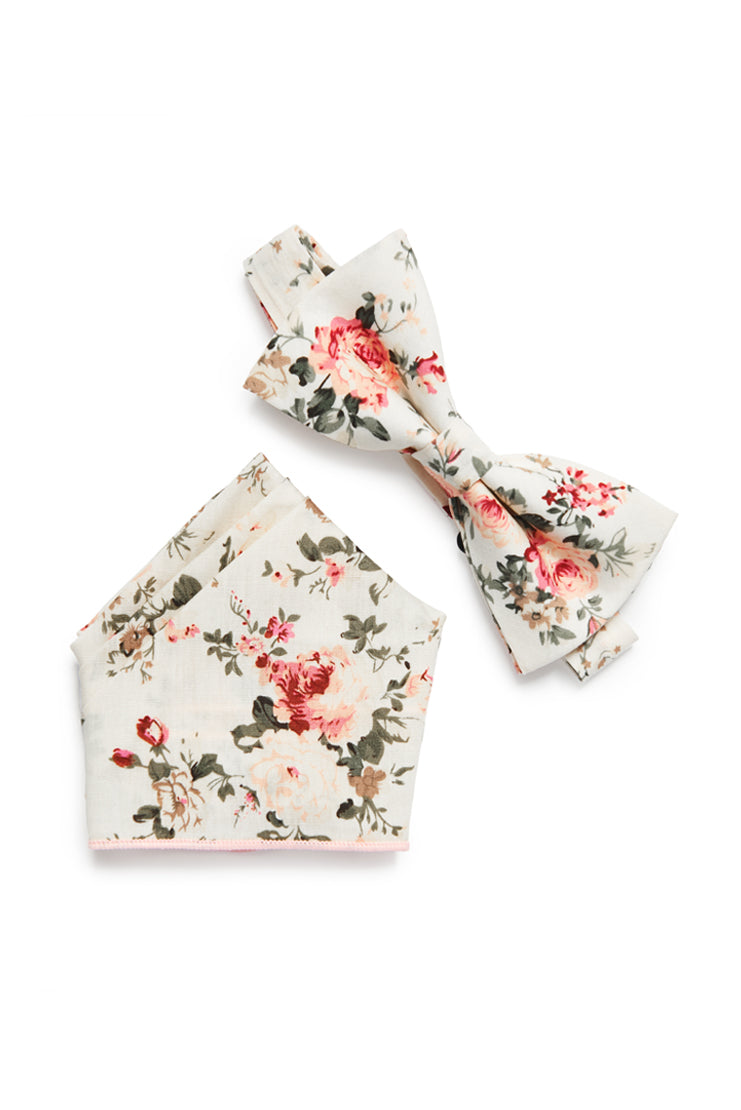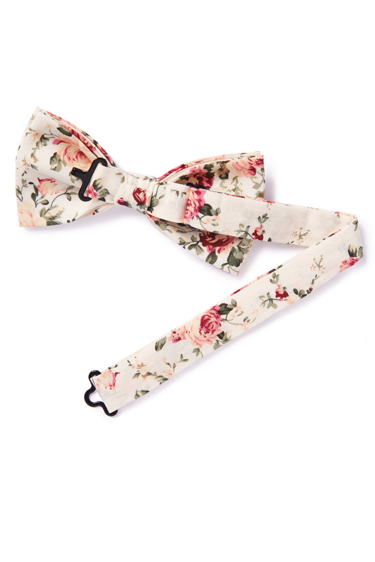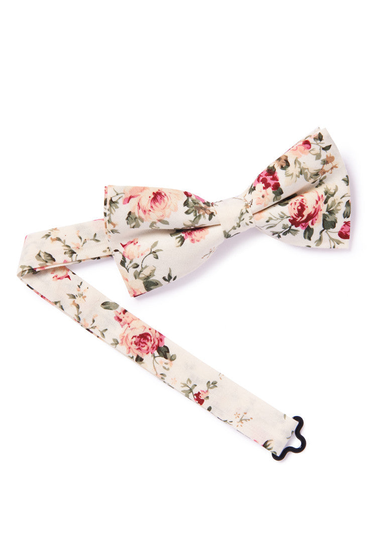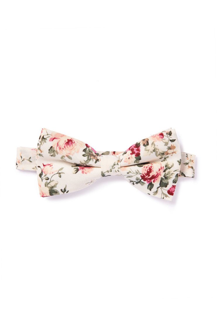 Add a touch of whimsy to your outfit with the Florals Chic Floral Bow Tie in Ivory. Its delicate floral pattern brings a fresh, playful vibe to any look, perfect for weddings, parties, or just brightening your day. Lightweight and easy to wear, this bow tie effortlessly combines charm and style for a standout accessory.