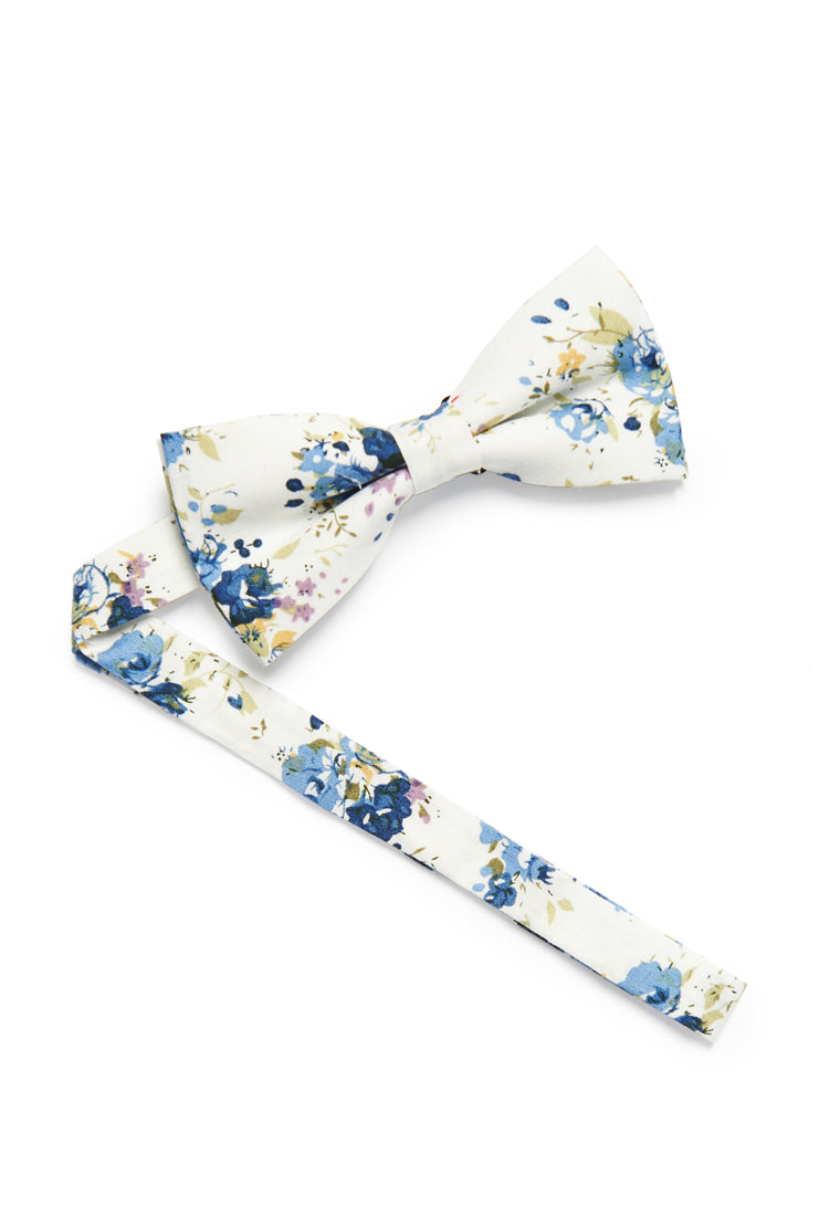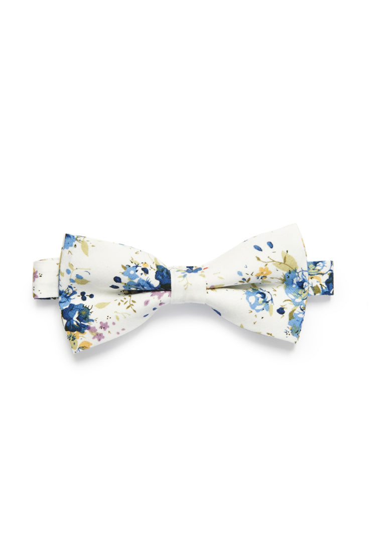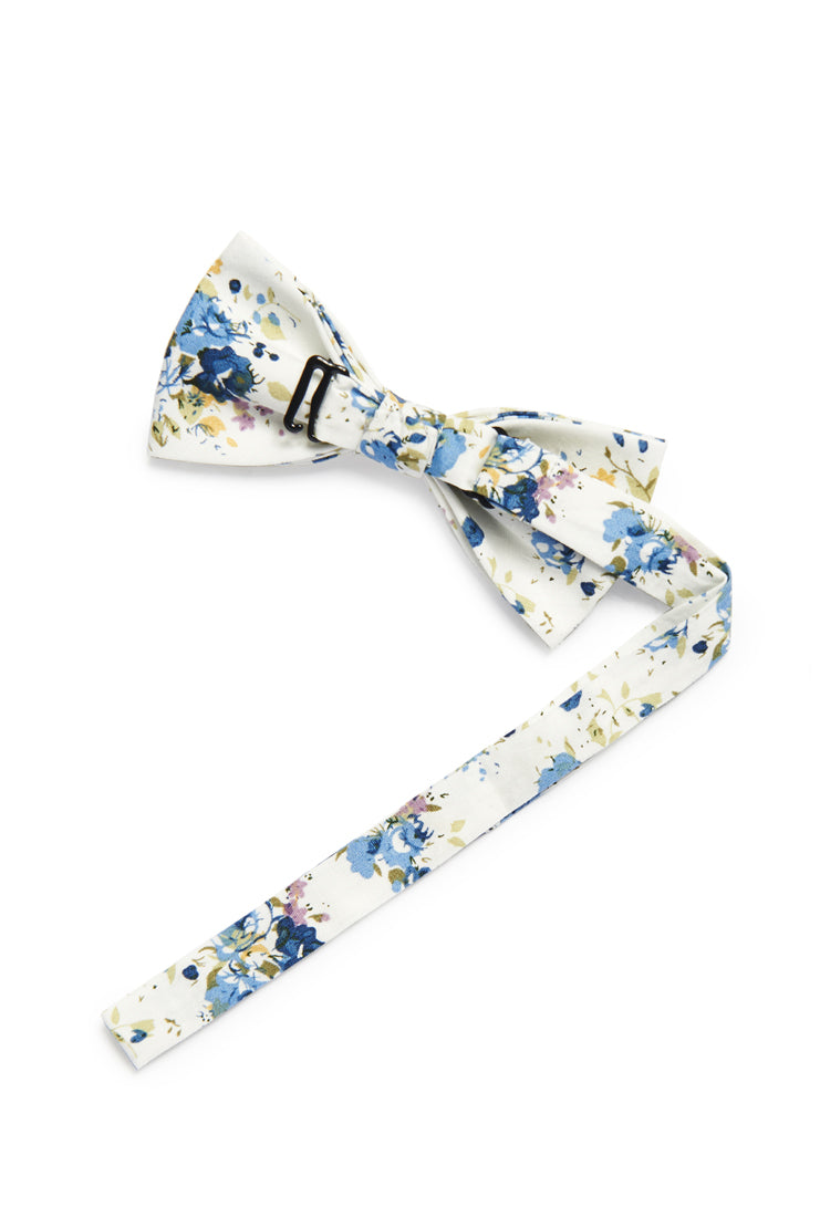 Pretty bright florals add spring time vibes to a dapper little bow tie.