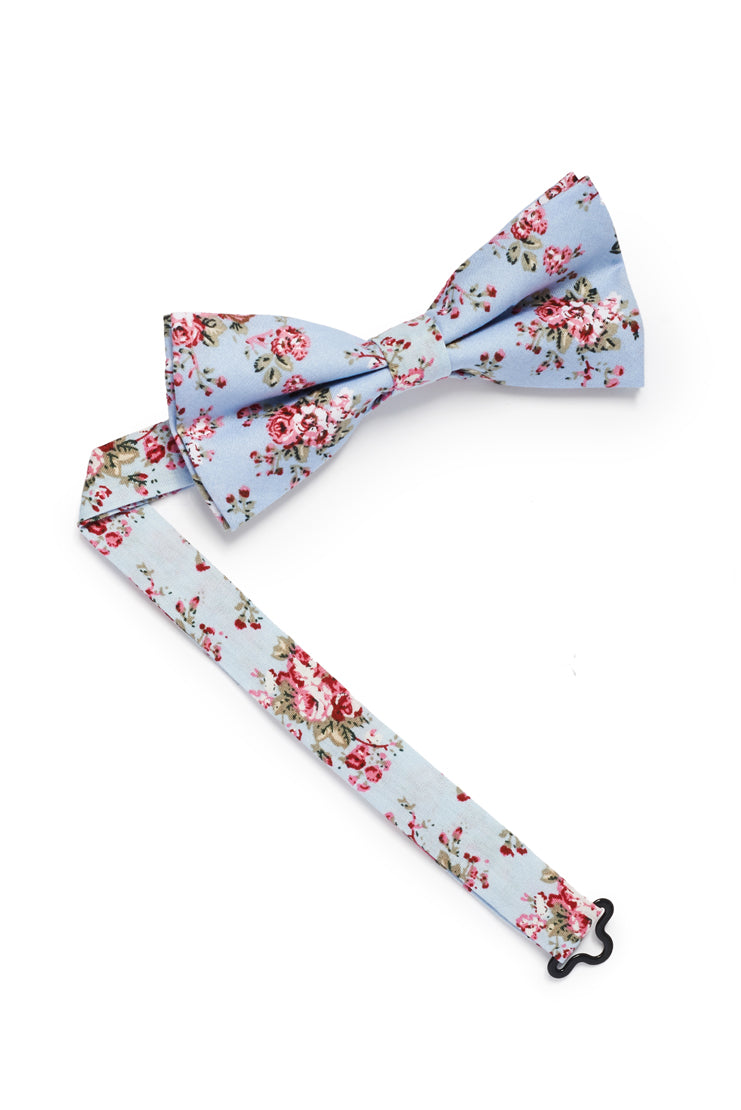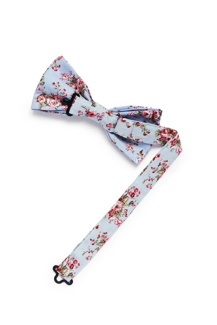 Pretty bright florals add spring time vibes to a dapper little bow tie.
